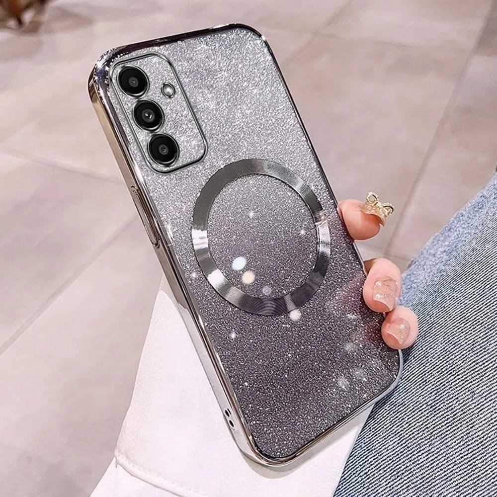 Fokozatos zselés csillogó tok MagSafe támogatással Samsung Galaxy S25 készülékhez - ezüst színű