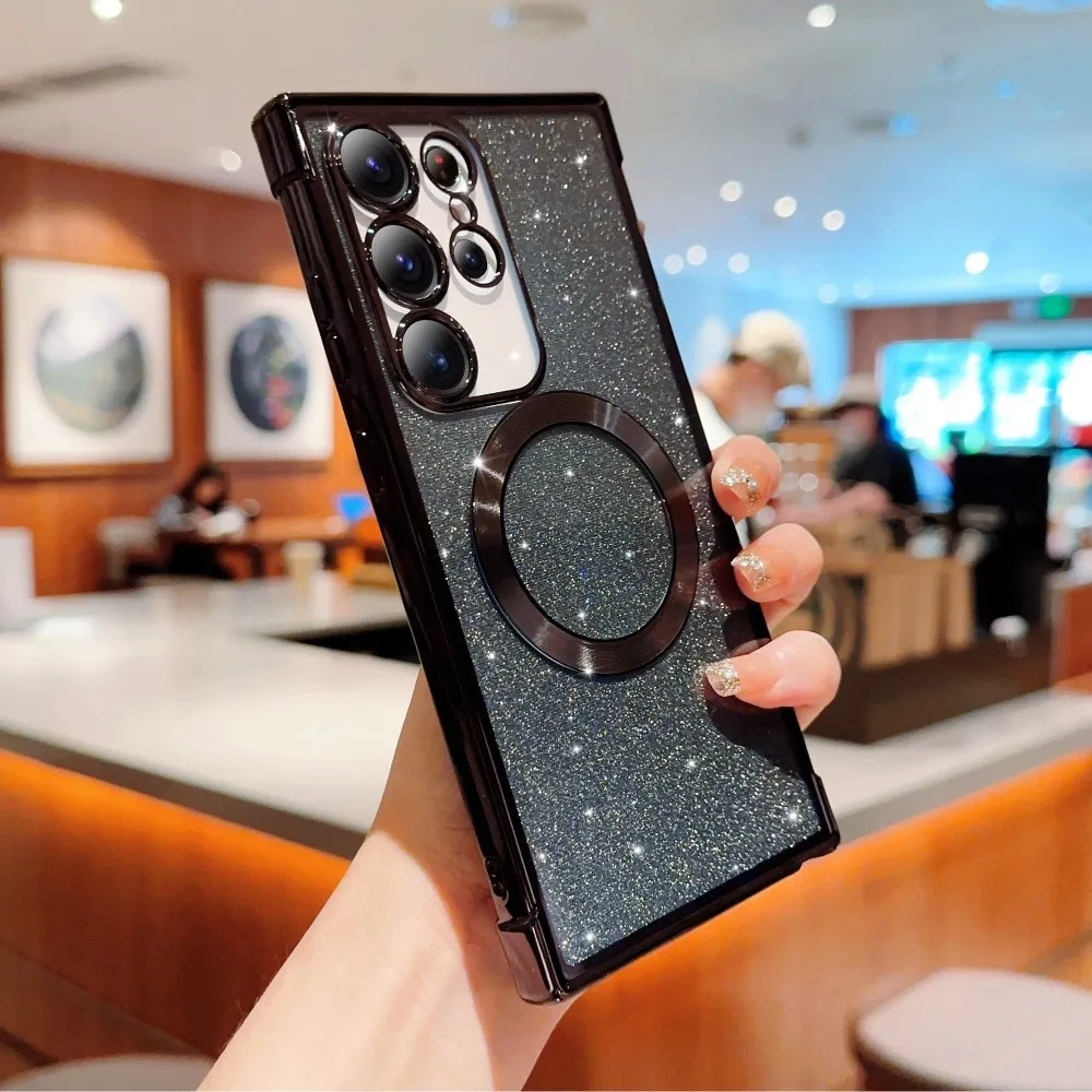Fokozatos zselés csillogó tok MagSafe támogatással Samsung Galaxy S25 Ultra készülékhez - fekete