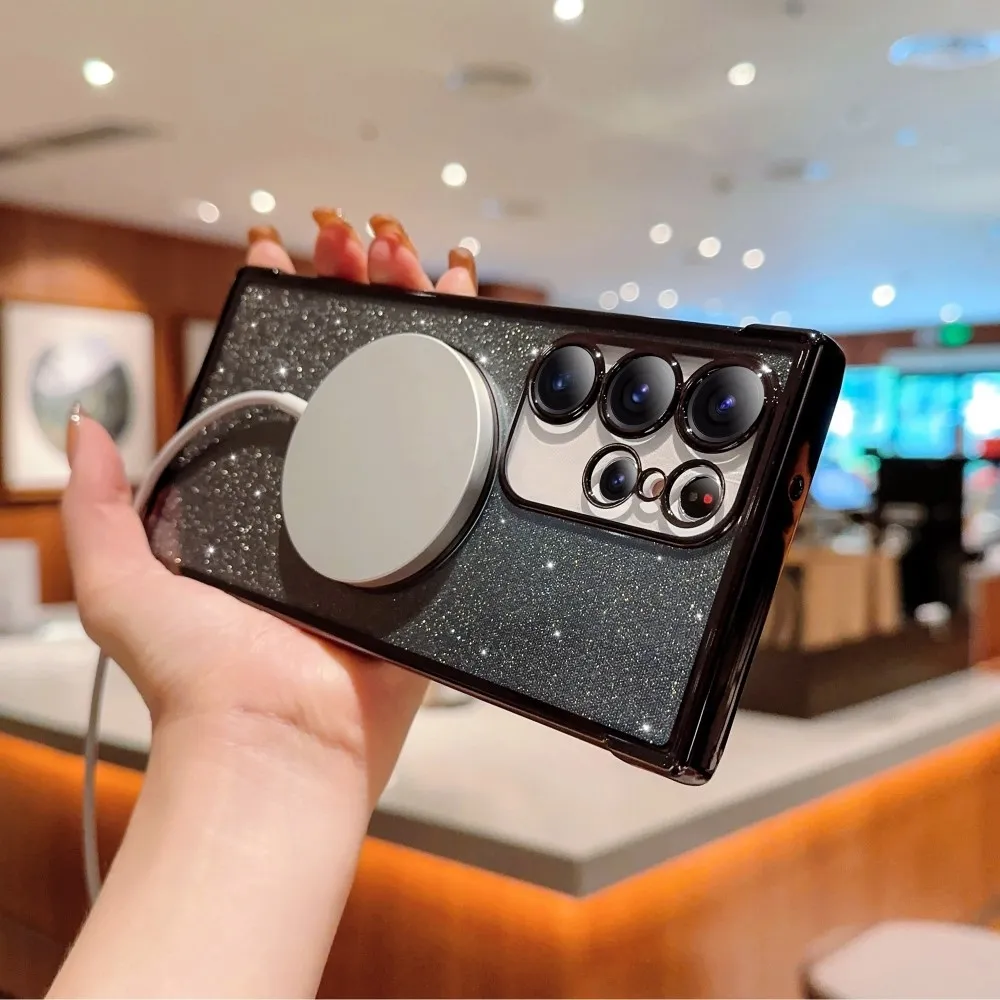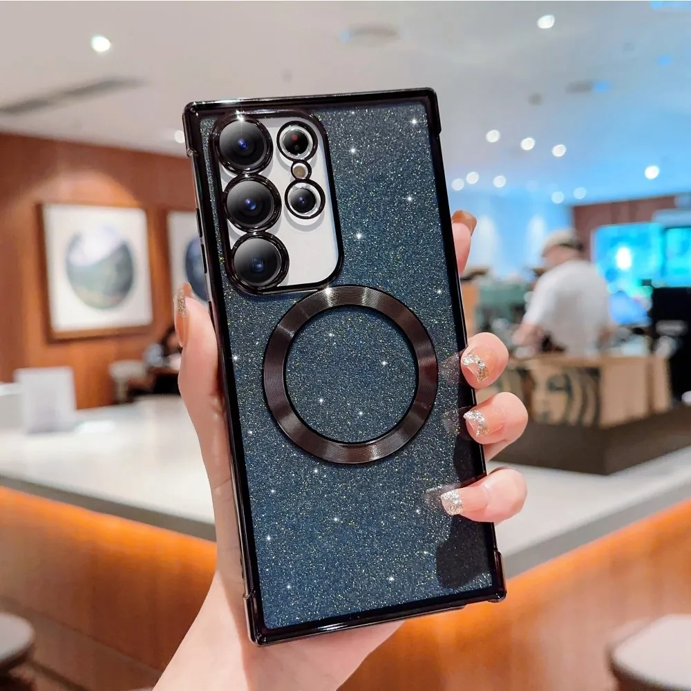 ✅【Tartós TPU anyag】A Samsung Galaxy S25 Ultra készülékhez készült, színátmenetes gélfényű csillogós tok MagSafe támogatással, fekete színben, kiváló minőségű TPU (rugalmas gél) anyagból készült, és kiváló védelmet nyújt a mindennapi kopás és elhasználódás ellen.