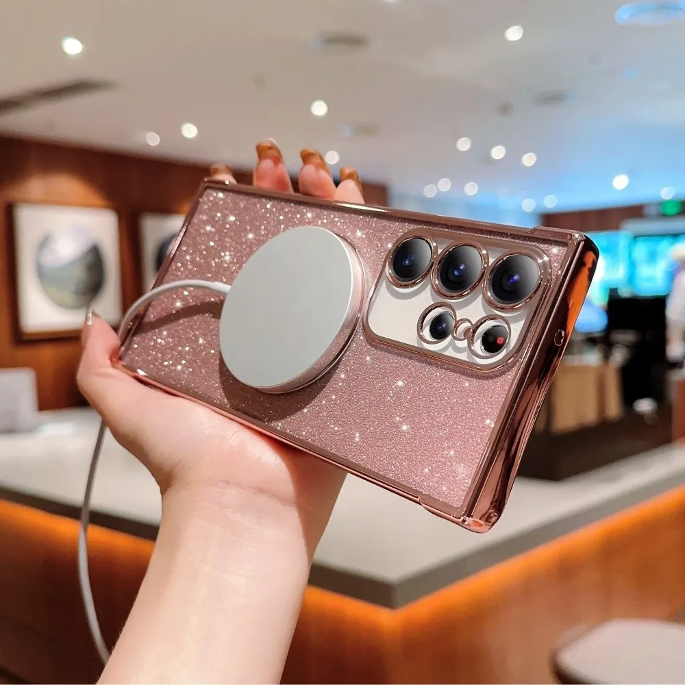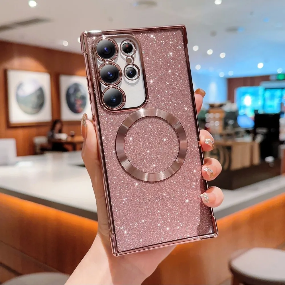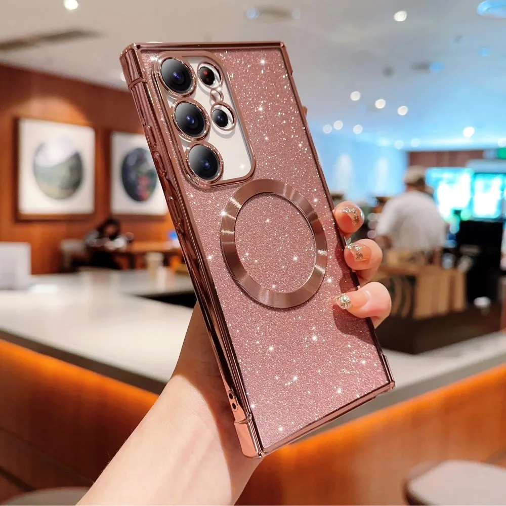 ✅【Tartós TPU anyag】Gradiens gélfényű csillogós tok MagSafe támogatással Samsung Galaxy S25 Ultra készülékhez rozéarany színben, kiváló minőségű TPU (rugalmas gél) anyagból készült, és kiváló védelmet nyújt a mindennapi kopás és elhasználódás ellen.