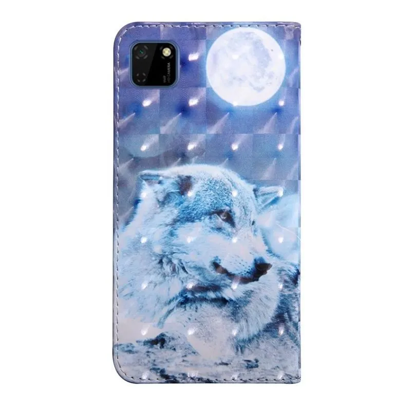 Foltos PU bőr pénztárca tok Huawei Y5p/Honor 9S - hold és farkas
