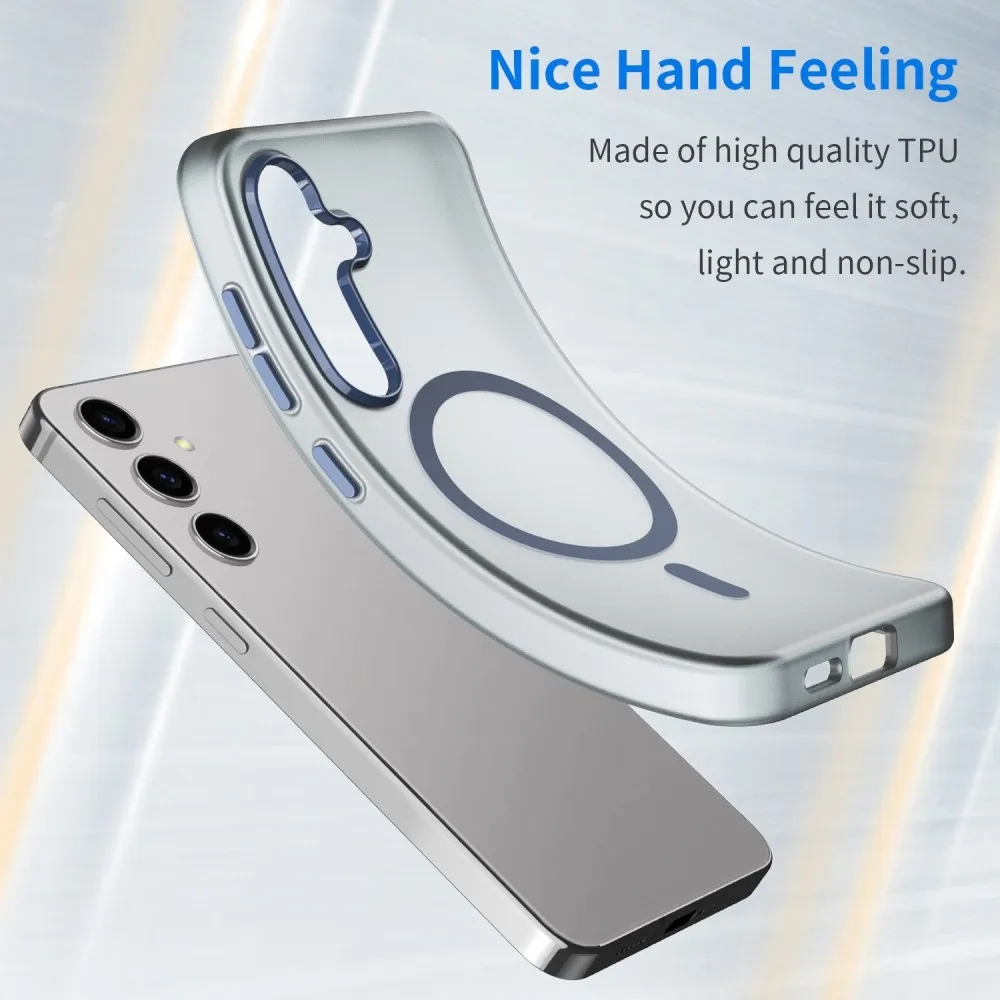 Sötétkék zselés borító Frost MagSafe támogatással Samsung Galaxy S24+/S25+ készülékhez