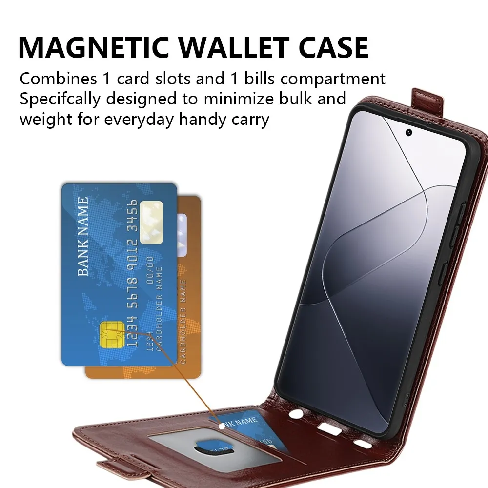 Barna pénztárca tok Függőleges Xiaomi 14 Pro számára