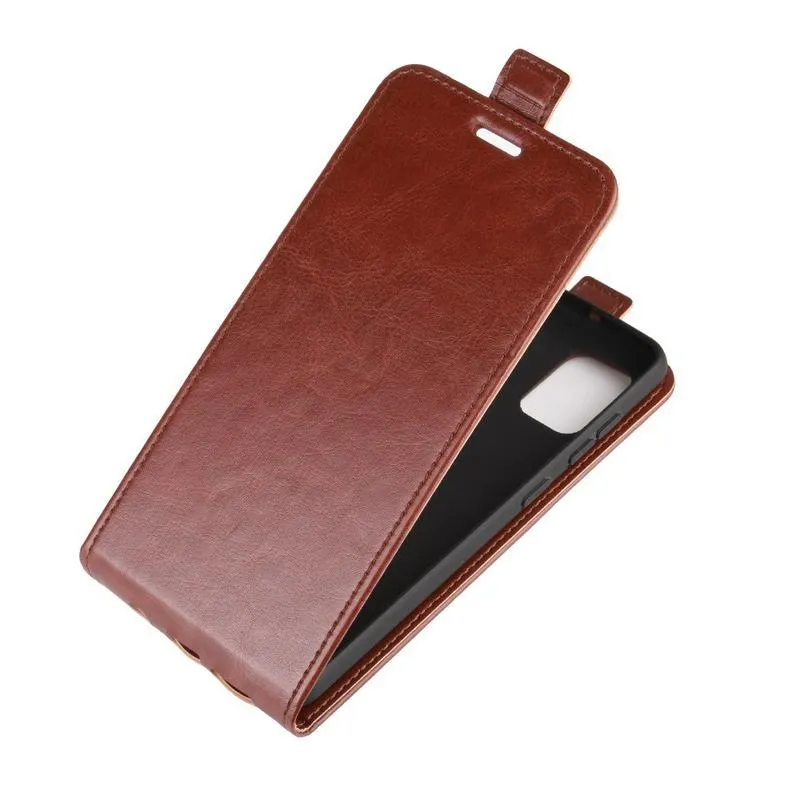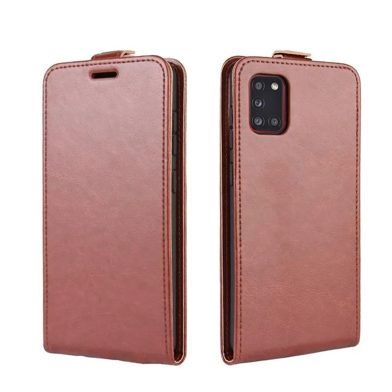 Függőleges PU bőr flip tok Samsung Galaxy A31 - barna