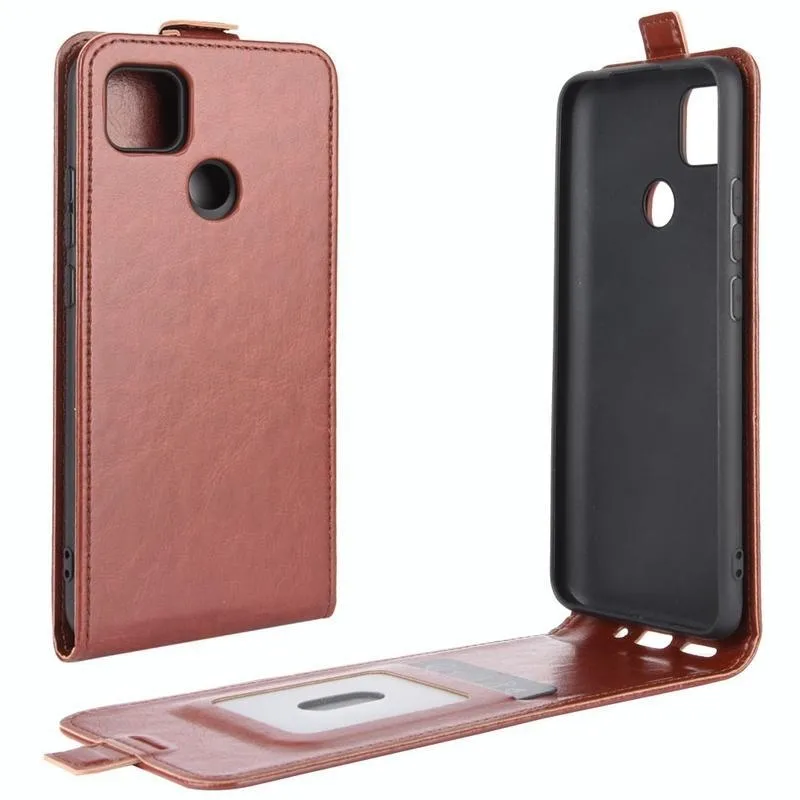 Függőleges PU bőr flip tok Xiaomi Redmi 9C - barna