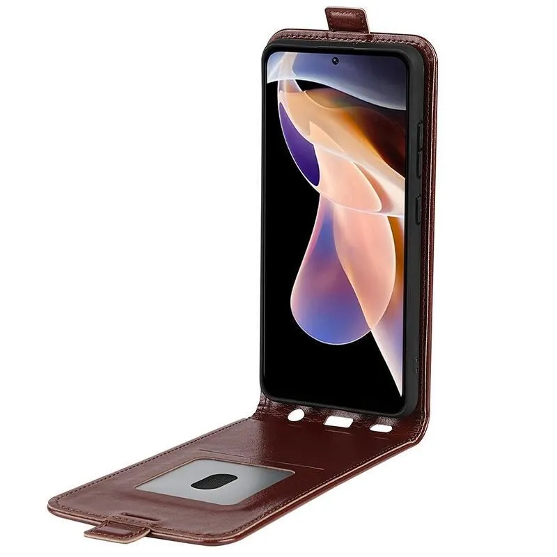 Függőleges PU bőr pénztárca tok Xiaomi Redmi Note 11 Pro+ 5G - barna