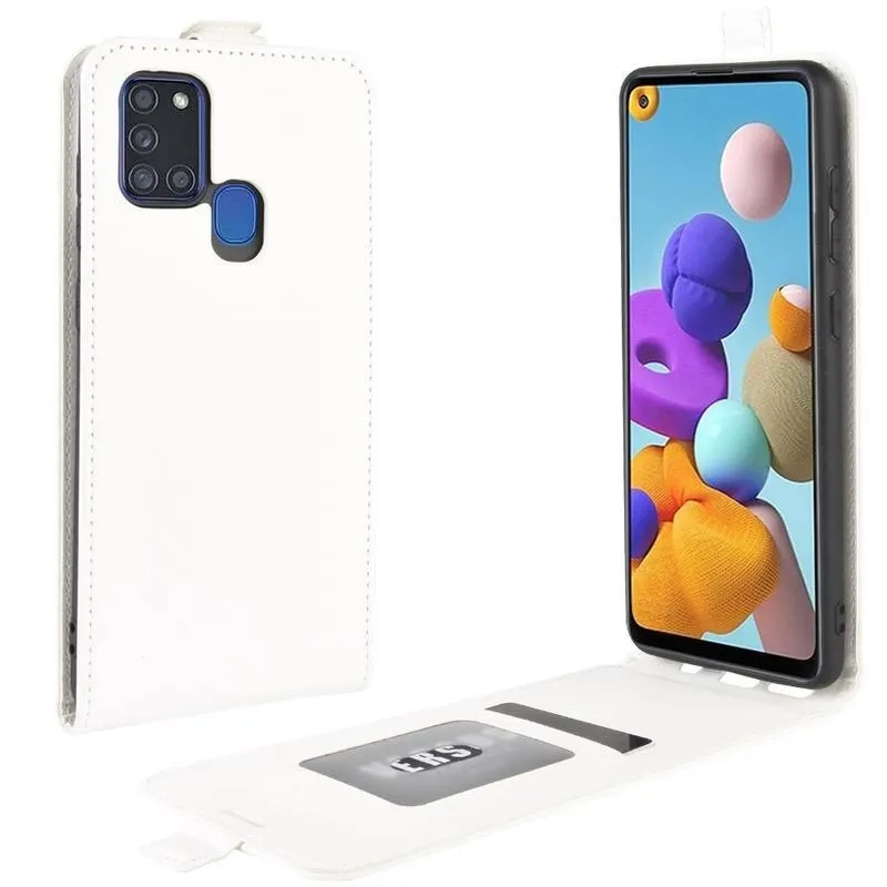 Függőleges PU bőr tok Samsung Galaxy A21s készülékhez - fehér