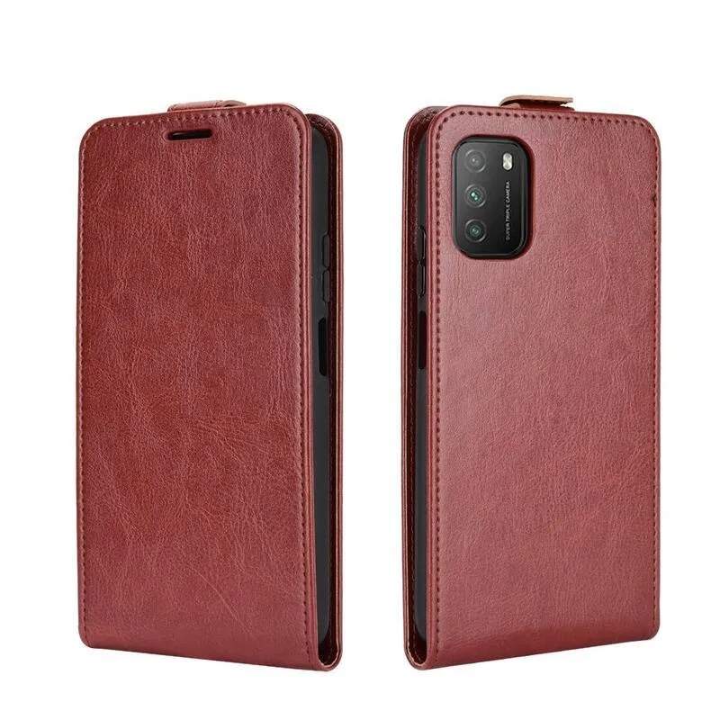 Függőleges PU bőr tok Xiaomi Poco M3-hoz - barna