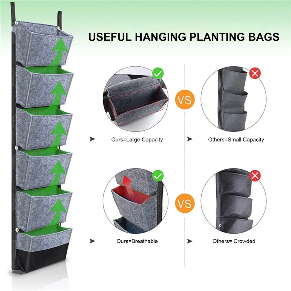 Alakítsa át az üres falat zöld oázissá a 6 zsebes vertikális függő virágtartó segítségével. A praktikus elrendezés lehetővé teszi többféle növény egymás feletti termesztését, így hatékonyan kihasználható a rendelkezésre álló tér. A tartós vízálló textil anyag megakadályozza a víz átszivárgását, és egész éves használatra is alkalmas. Ez a függesztett rendszer ideális fűszernövényekhez, virágokhoz és kisebb dísznövényekhez beltéren és kültéren egyaránt.