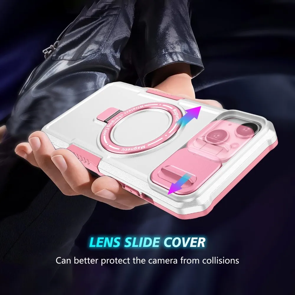 Fulcrum tartós borító kameravédelemmel és MagSafe funkcióval iPhone 14 készülékhez - rózsaszín/fehér
