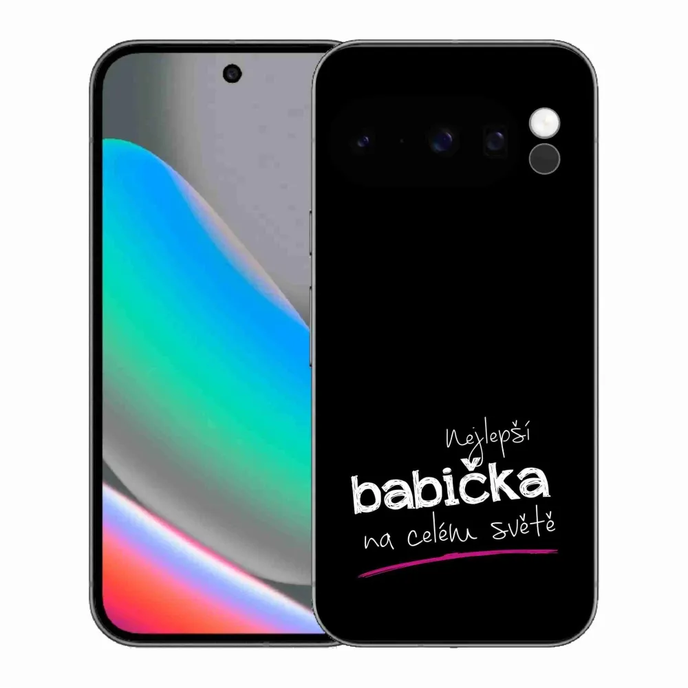 Rugalmas zselés tok mmCase a Google Pixel 10 Pro képével - legjobb nagymama 4 fekete háttérrel