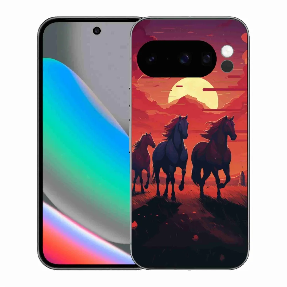 Rugalmas zselés tok mmCase a Google Pixel 10 Pro képével - lovak és naplemente