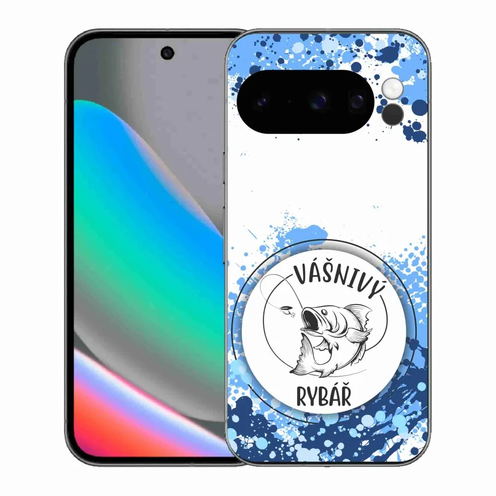 Rugalmas zselés tok mmCase a Google Pixel 10 Pro képével - szenvedélyes halász fehér háttérrel