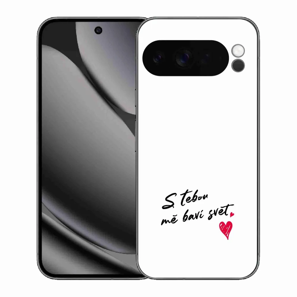 Rugalmas zselés tok mmCase a Google Pixel 10 Pro XL képével - szerelmes szöveg 1 fehér háttérrel