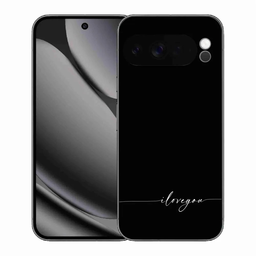 Rugalmas zselés tok mmCase a Google Pixel 10 Pro XL képével - I love you fekete háttérrel