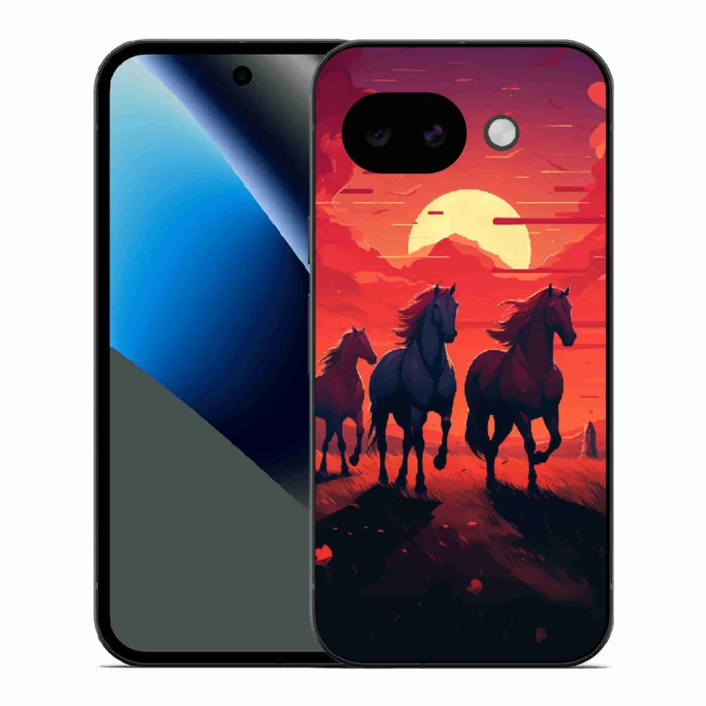 Rugalmas zselés tok mmCase a Google Pixel 10a képével - lovak és naplemente