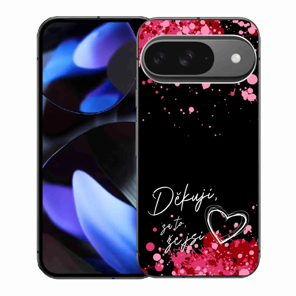 Rugalmas zselés tok mmCase a Google Pixel 9/9 Pro képével - szerelmes szöveg 2 fekete háttérrel