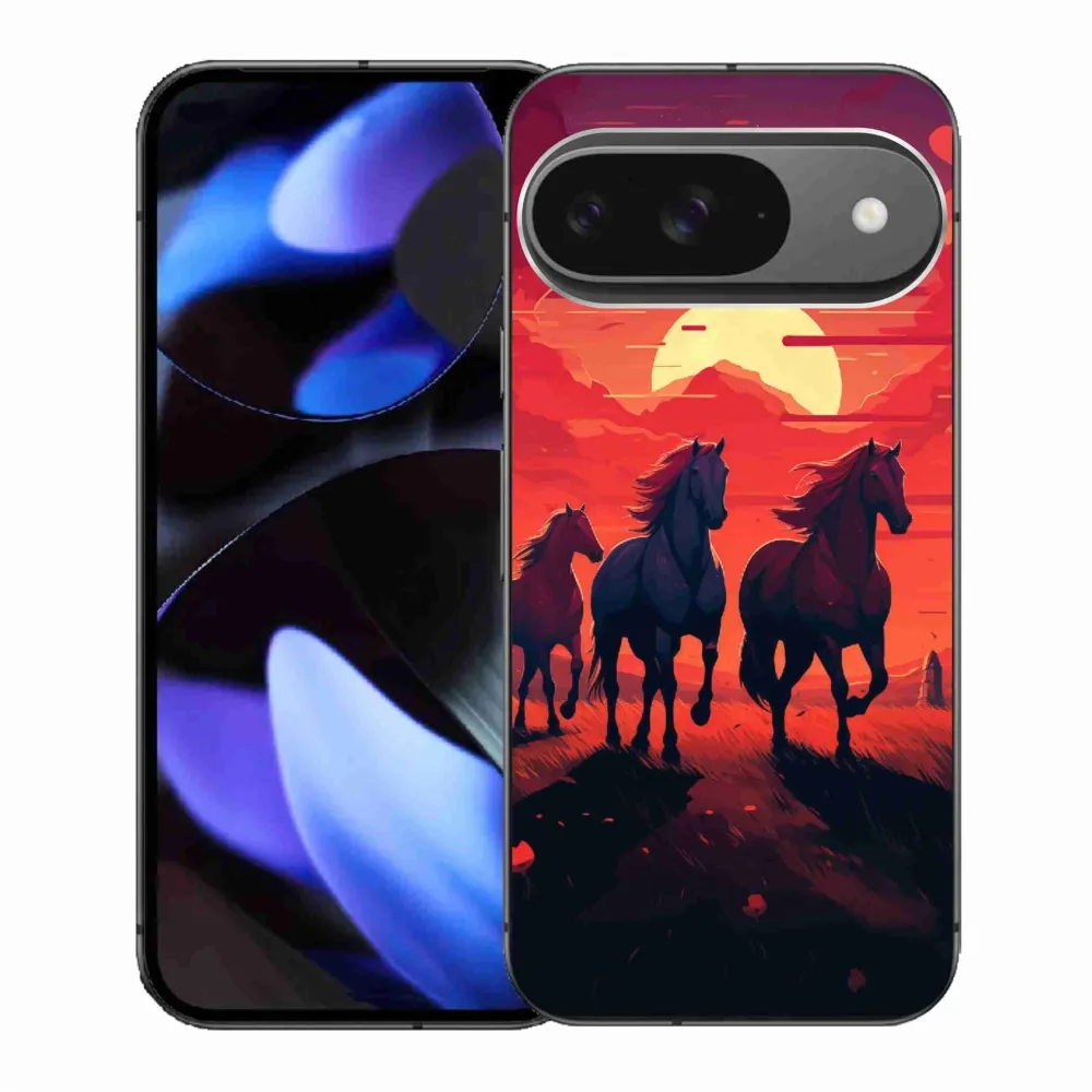 Gél borítás mmCase a Google Pixel 9/9 Pro számára - lovak és naplemente