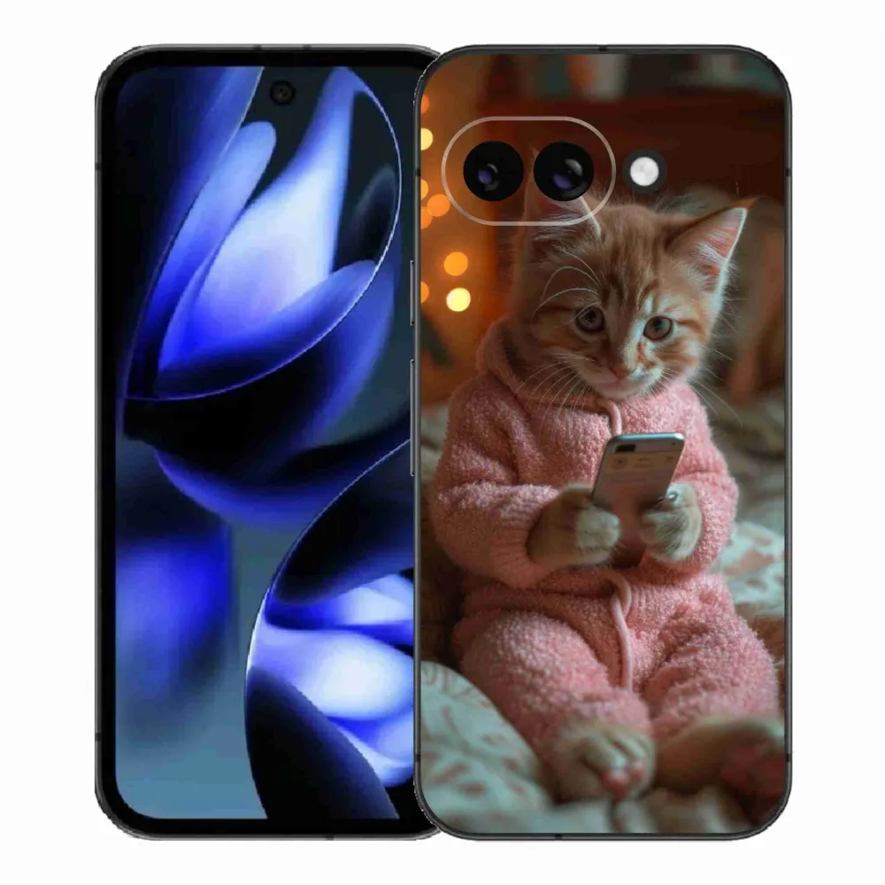 Rugalmas zselés tok mmCase a Google Pixel 9a képével - cica a mobillal