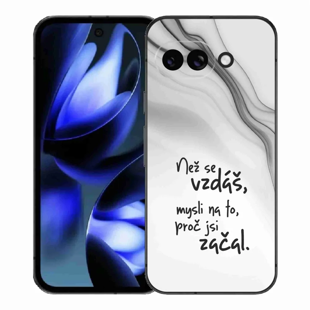 Rugalmas zselés tok mmCase képpel a Google Pixel 9a - idézet 2 fehér háttérrel
