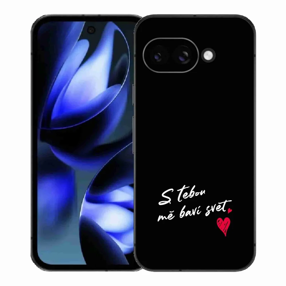 Rugalmas zselés tok mmCase a Google Pixel 9a képével - szerelmes szöveg 1 fekete háttérrel