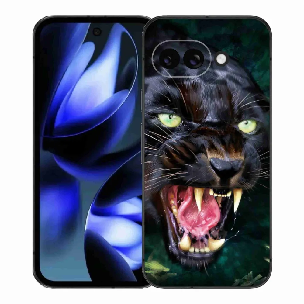 Rugalmas zselés tok mmCase a Google Pixel 9a képével - dühös fekete párduc