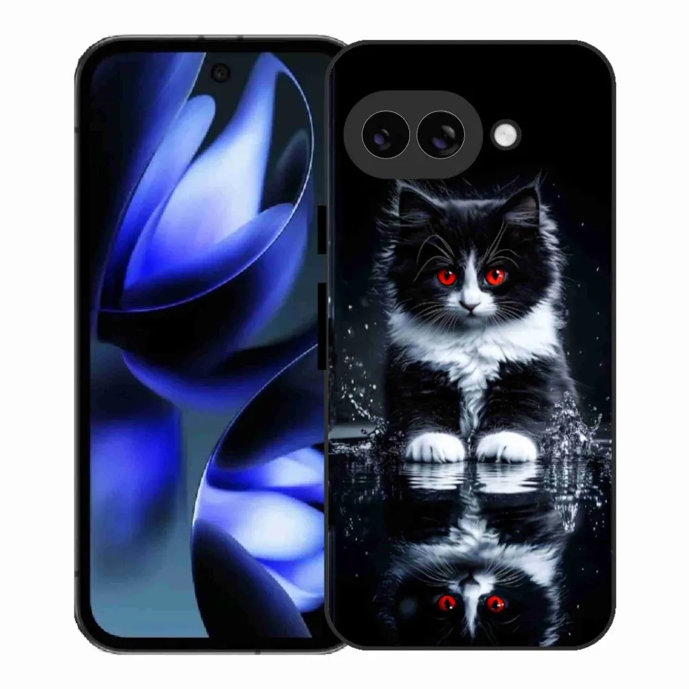 Rugalmas zselés tok mmCase a Google Pixel 9a képével - fekete-fehér cica