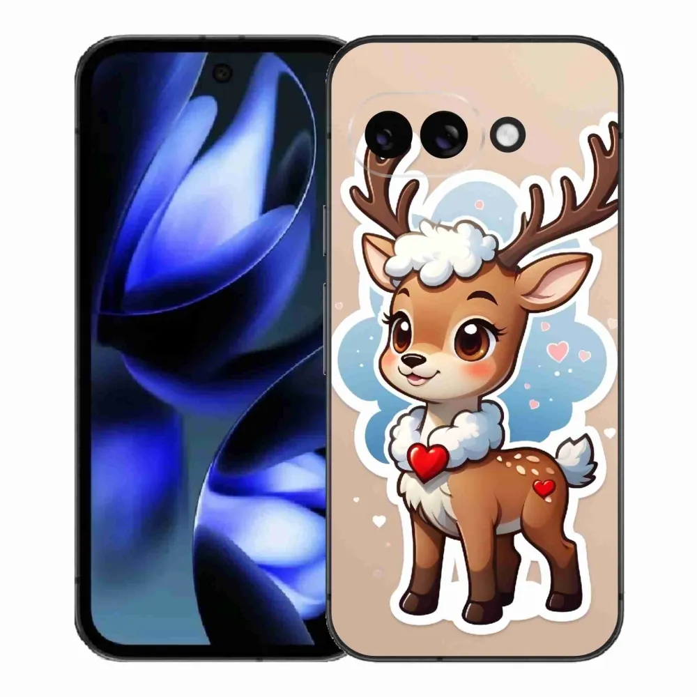 Rugalmas zselés tok mmCase a Google Pixel 9a képével - rajzfilm rénszarvas
