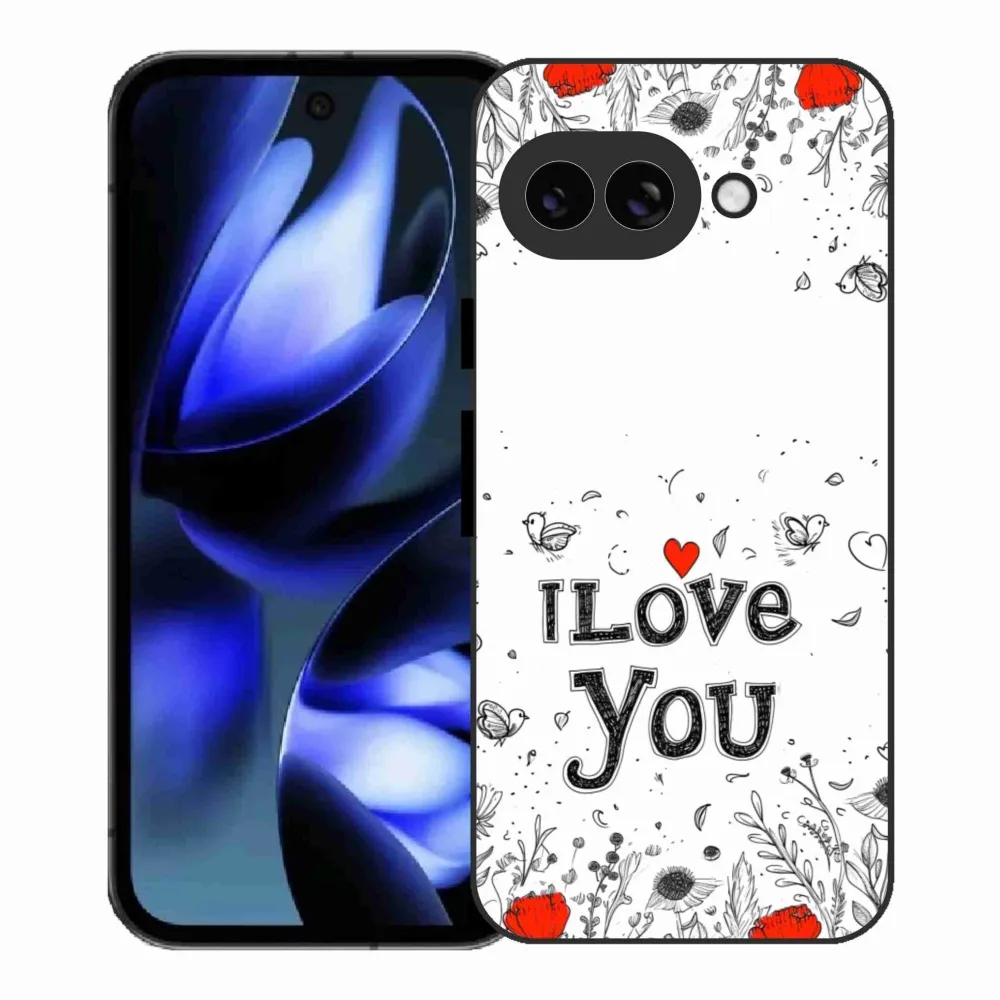 Rugalmas zselés tok mmCase képpel a Google Pixel 9a - I love you fehér háttérrel