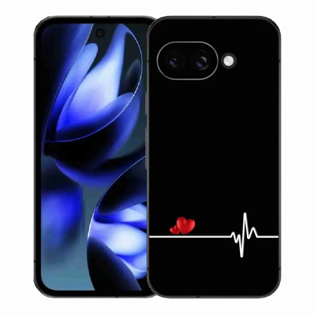 Rugalmas zselés tok mmCase a Google Pixel 9a képével - szív és szívverés fekete háttérrel