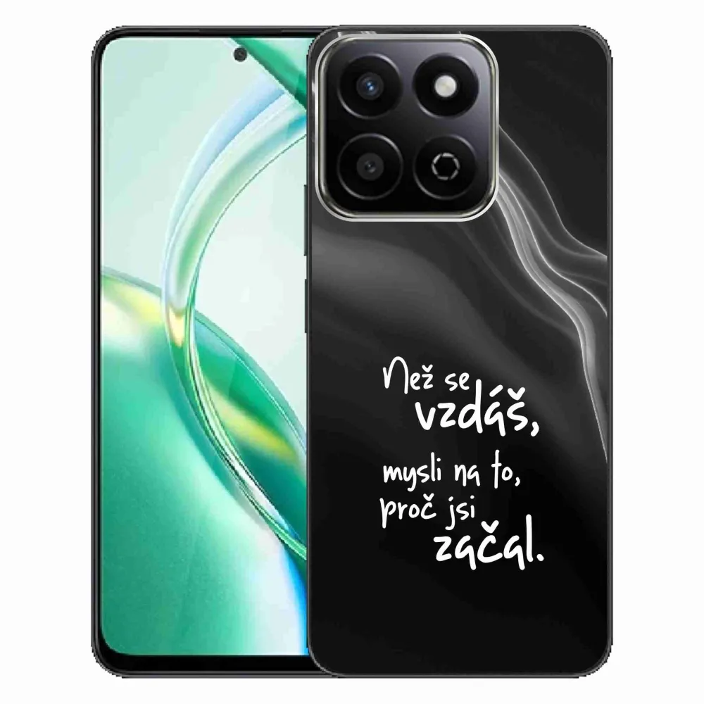 Rugalmas zselés tok mmCase a Honor 200 Smart 5G képével - idézet 2 fekete háttérrel