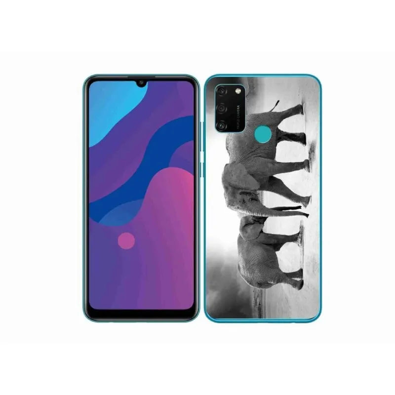 Gél borítás mmCase a Honor 9A számára - fekete és fehér elefántok