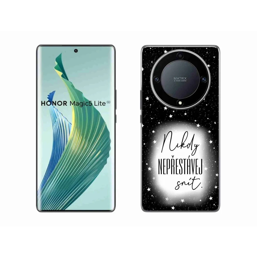 Rugalmas zselés tok mmCase a Honor Magic 5 Lite 5G képével - idézet 1 fehér és fekete háttérrel