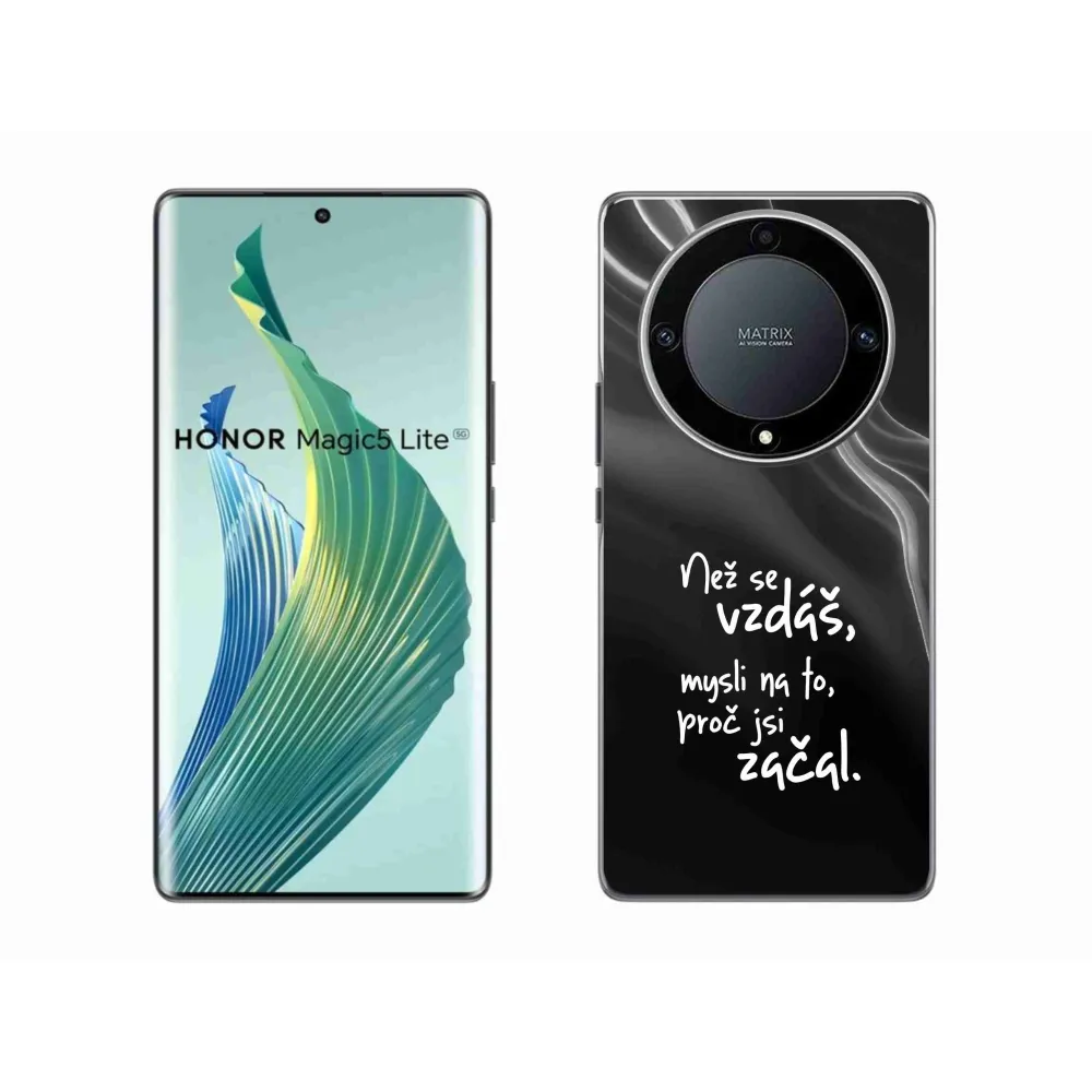 Rugalmas zselés tok mmCase a Honor Magic 5 Lite 5G képével - idézet 2 fekete háttérrel