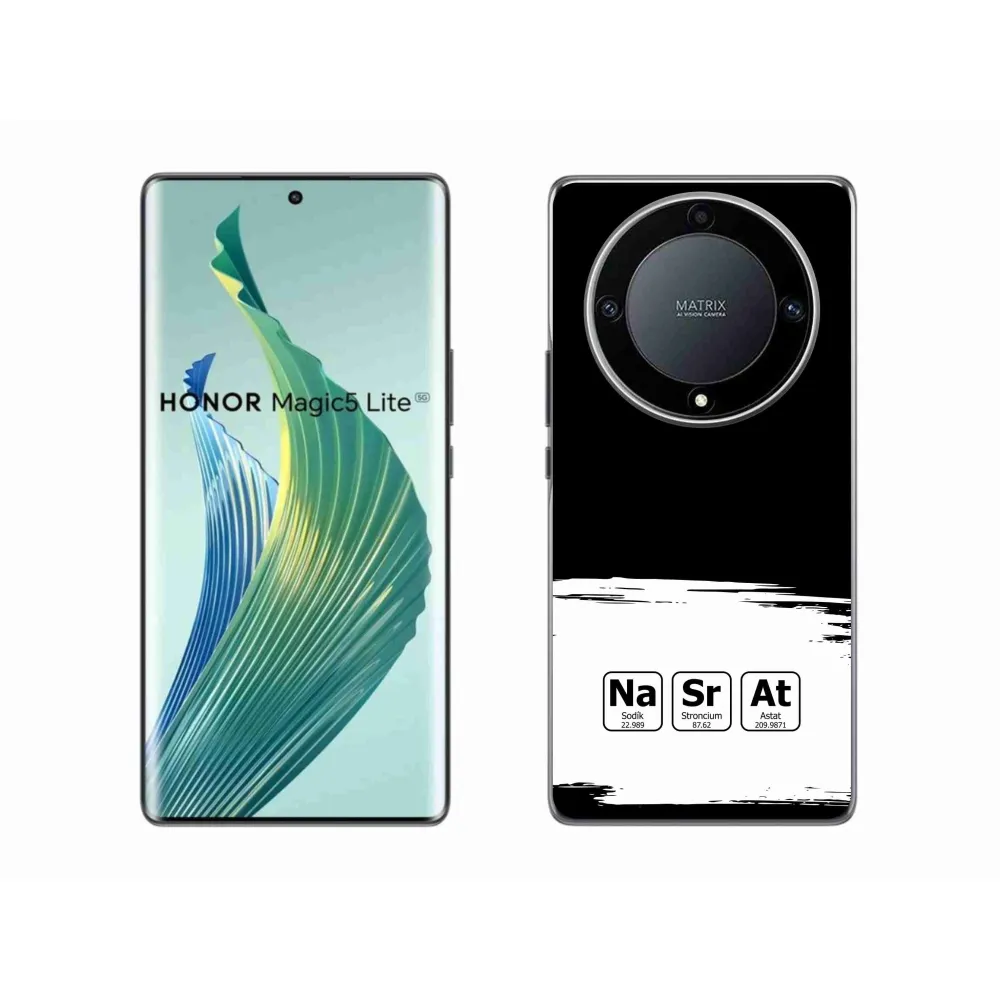 Rugalmas zselés tok mmCase a Honor Magic 5 Lite 5G képével - kémiai elemek fehér és fekete háttérrel