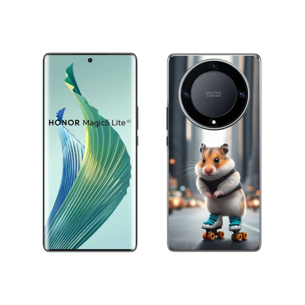 Gél borítás mmCase a Honor Magic 5 Lite 5G számára - hörcsög a korcsolyán