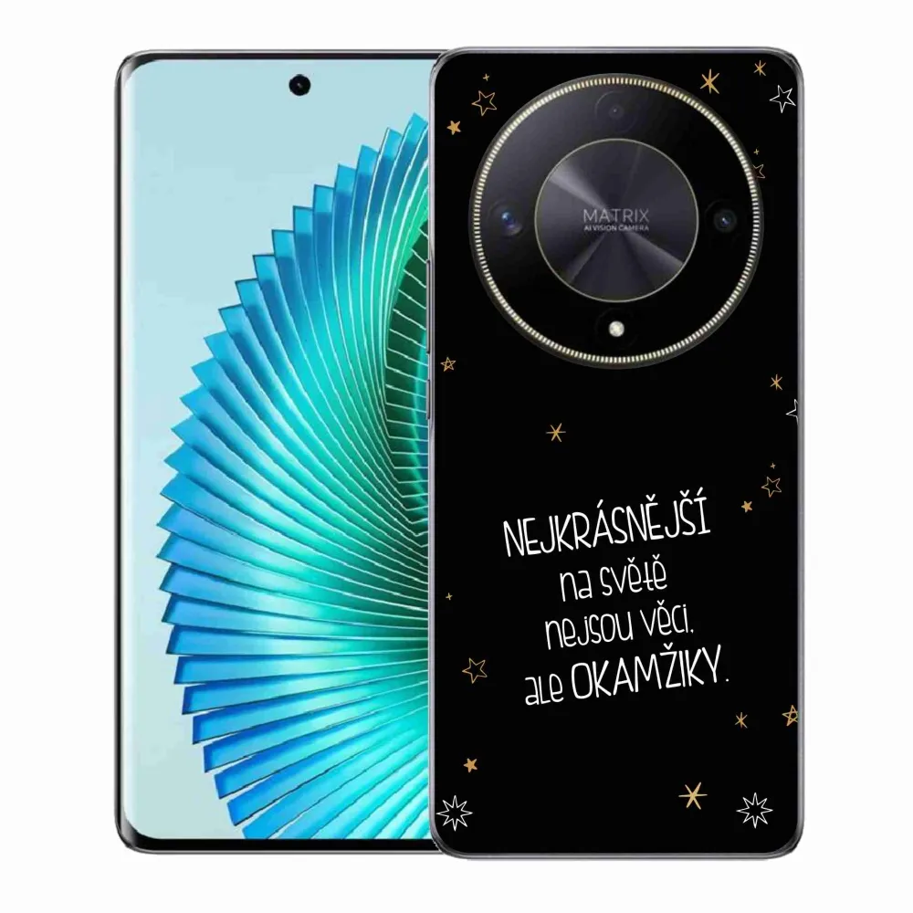 Rugalmas zselés tok mmCase a Honor Magic 6 Lite 5G képével - idézet 4 fekete háttérrel