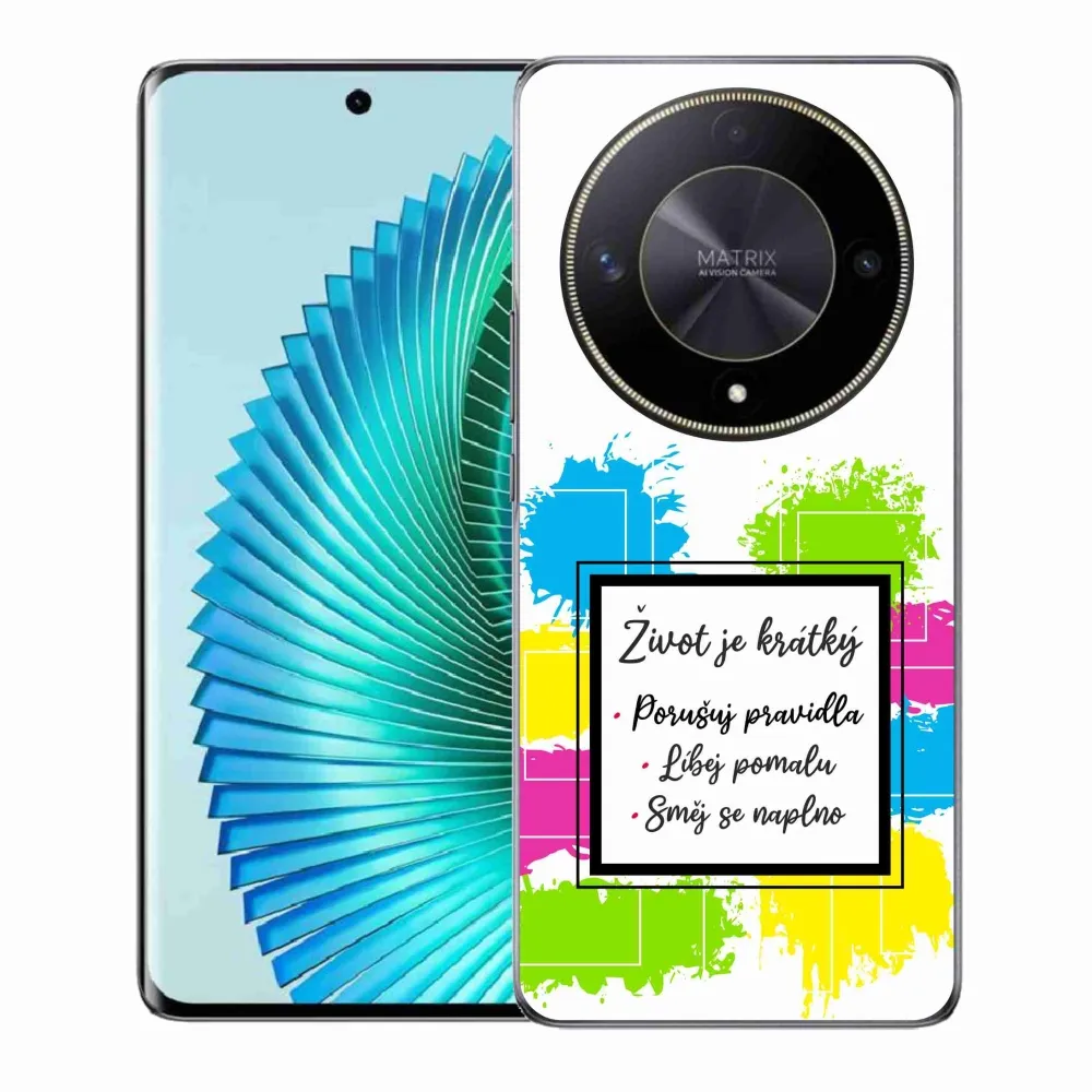 Rugalmas zselés tok mmCase a Honor Magic 6 Lite 5G képével - idézem 5 fehér háttérrel