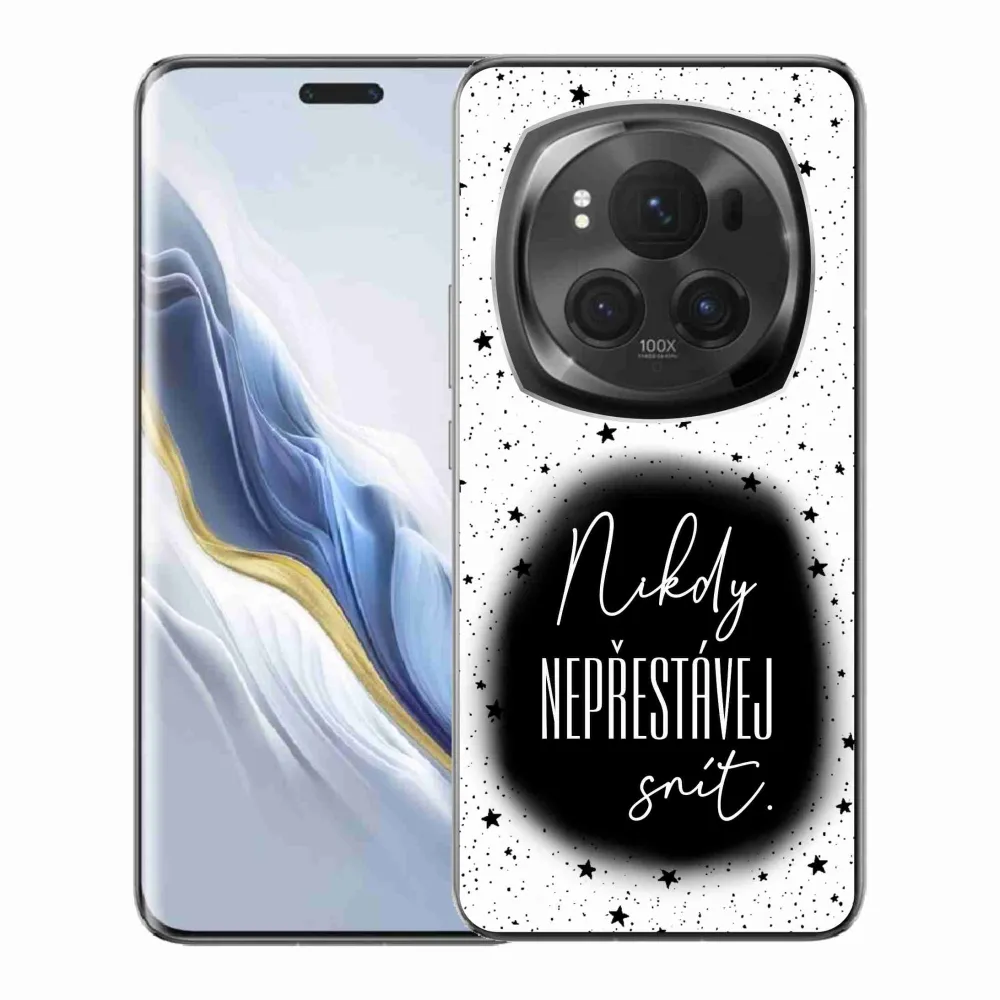 Rugalmas zselés tok mmCase a Honor Magic 6 Pro 5G képével - idézet 1 fekete és fehér háttérrel