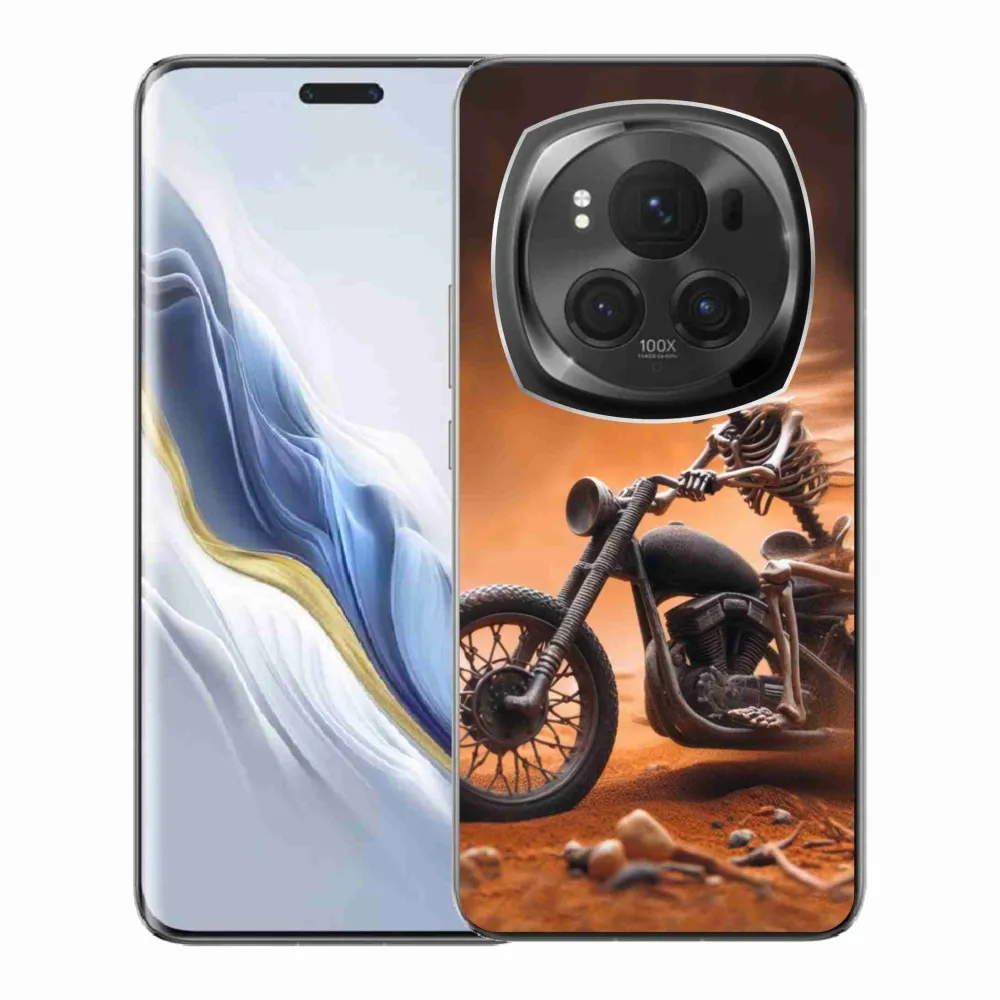 Rugalmas zselés tok mmCase a Honor Magic 6 Pro 5G képével - csontváz egy motorkerékpáron