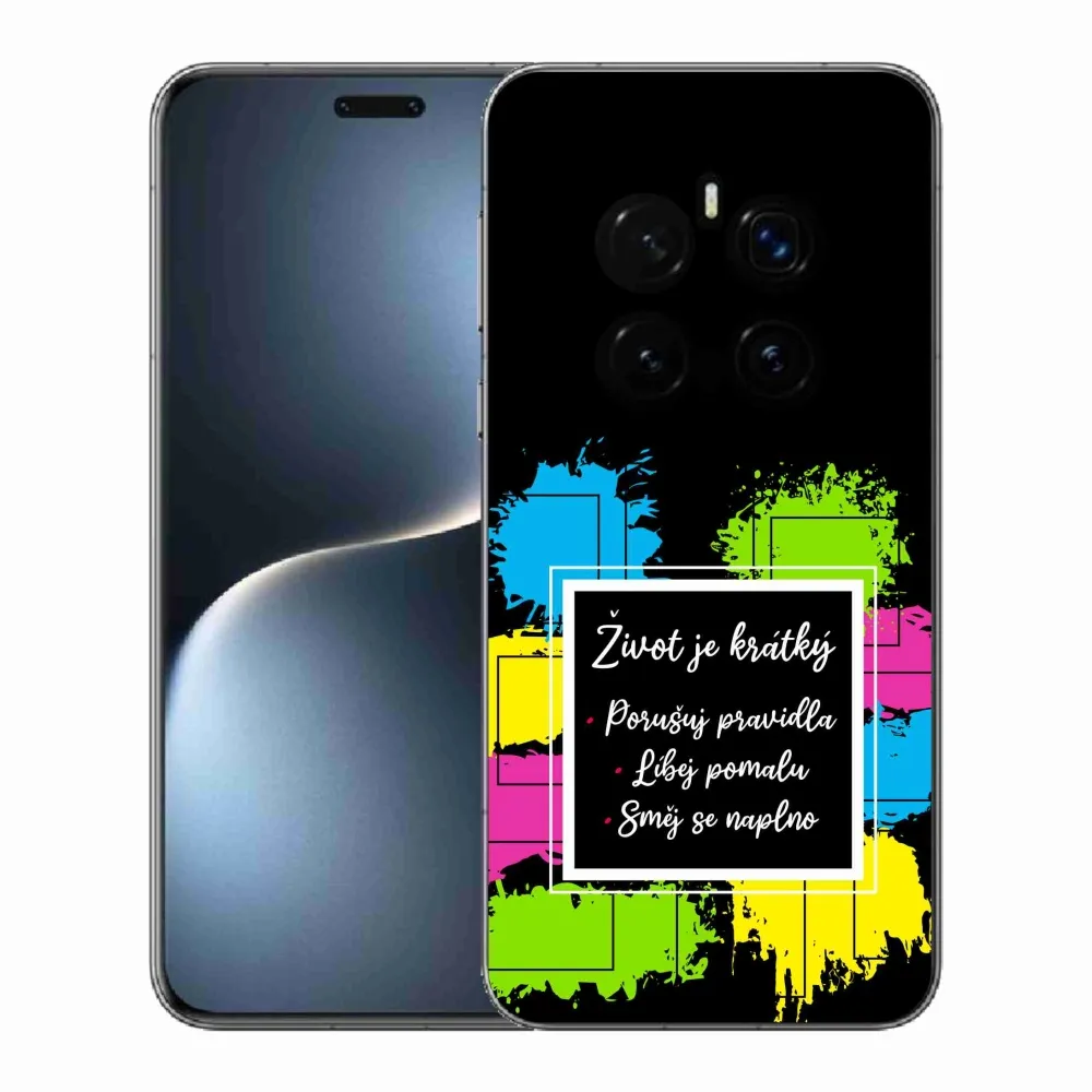 Rugalmas zselés tok mmCase a Honor Magic 7 Pro 5G képével - idézet 5 fekete háttérrel