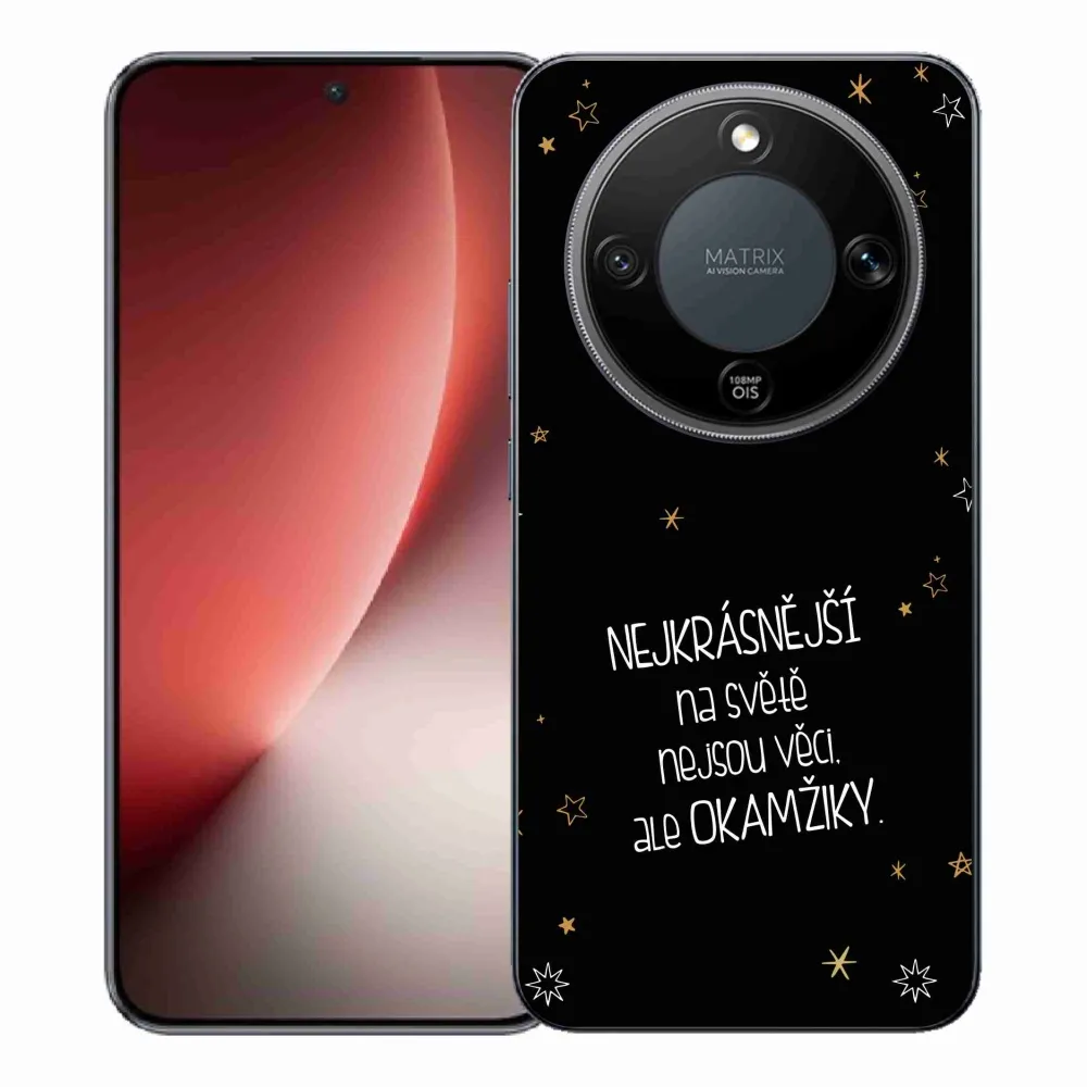 Rugalmas zselés tok mmCase a Honor Magic 8 Lite 5G képével - idézet 4 fekete háttérrel