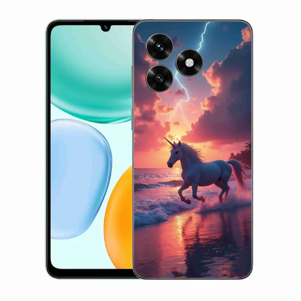 Rugalmas zselés tok mmCase képpel a Honor X5c Plus számára - egyszarvú a tengerparton