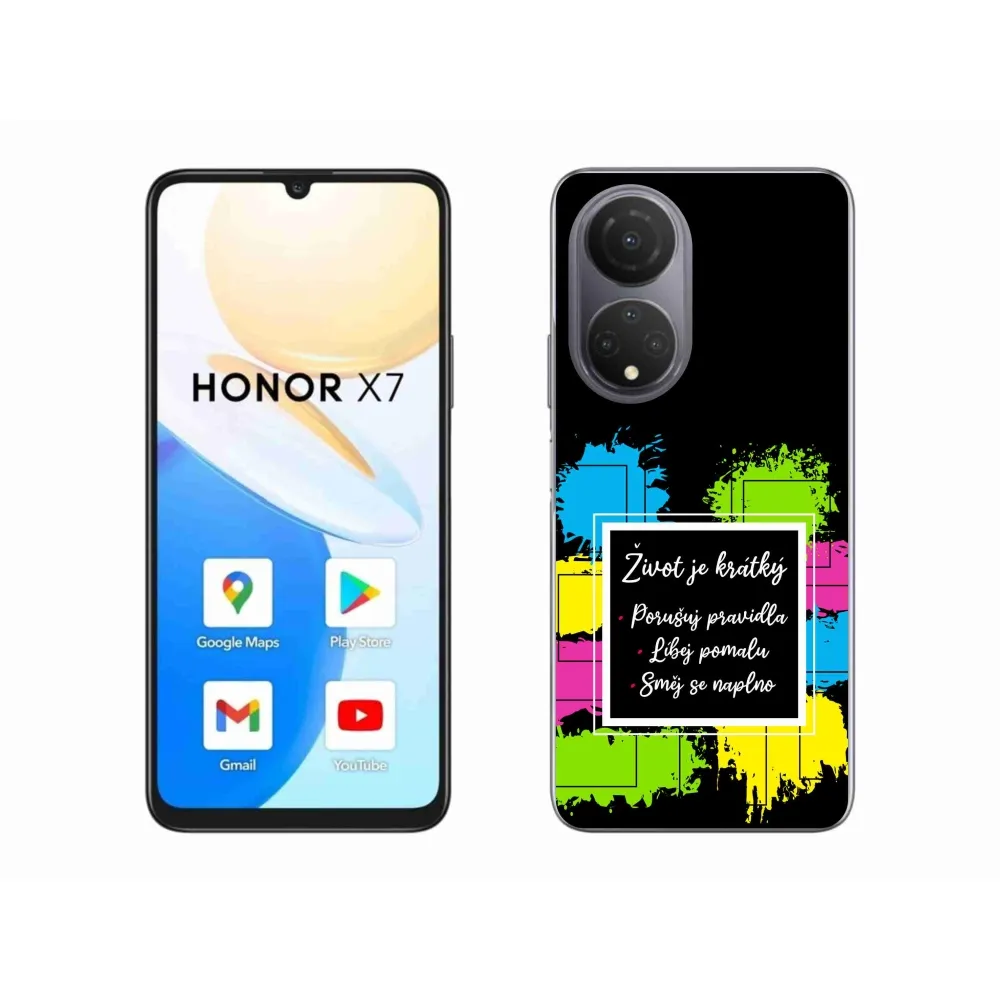 Rugalmas zselés tok mmCase a Honor X7 képével - idézet 5 fekete háttérrel