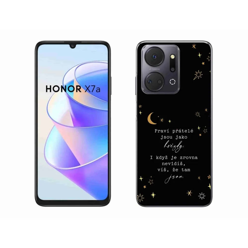 Rugalmas zselés tok mmCase a Honor X7a képével - idézet 6 fekete háttérrel