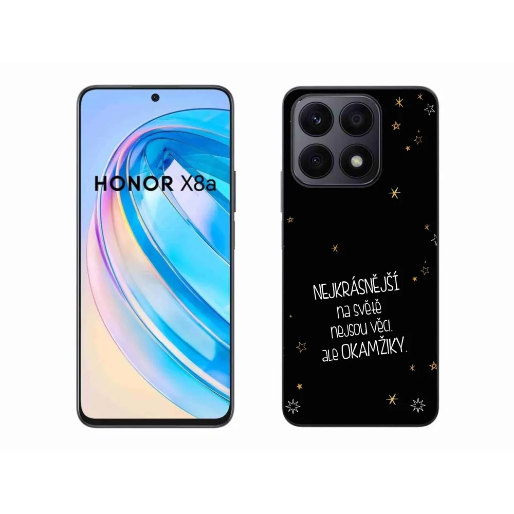 Rugalmas zselés tok mmCase a Honor X8a képével - idézet 4 fekete háttérrel