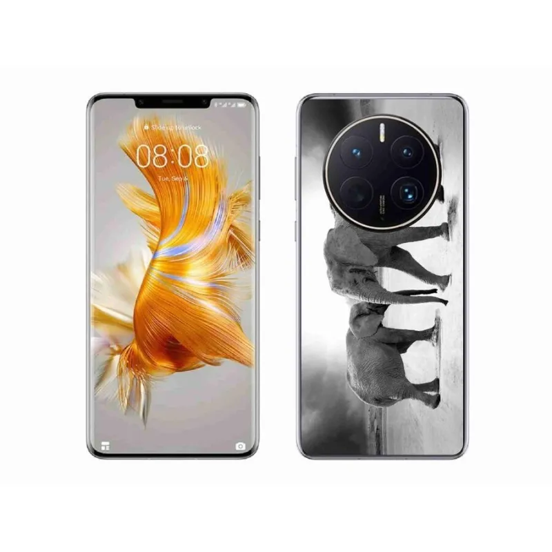 Gél borítás mmCase a Huawei Mate 50 Pro számára - fekete és fehér elefántok