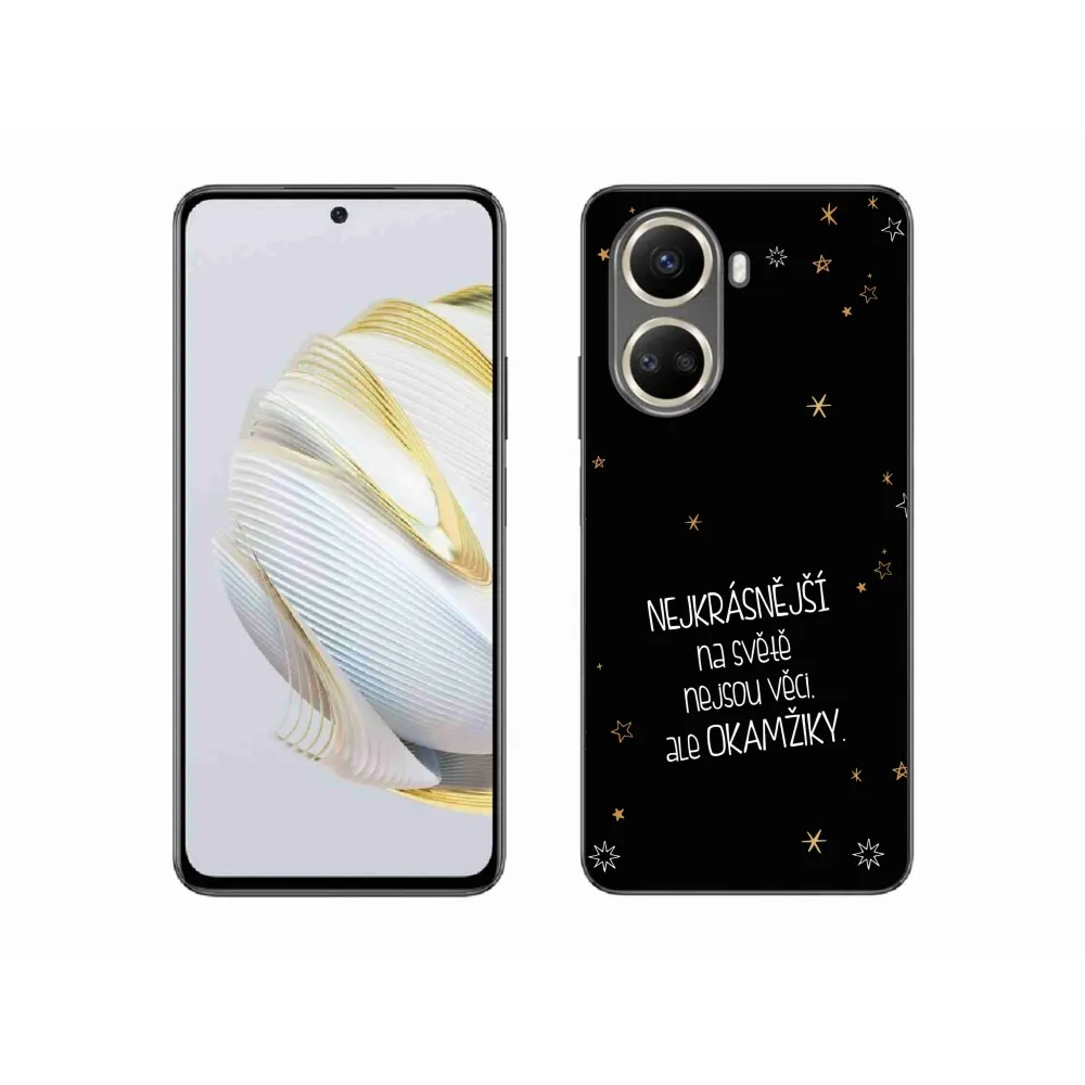 Rugalmas zselés tok mmCase a Huawei Nova 10 SE képével - idézet 4 fekete háttérrel