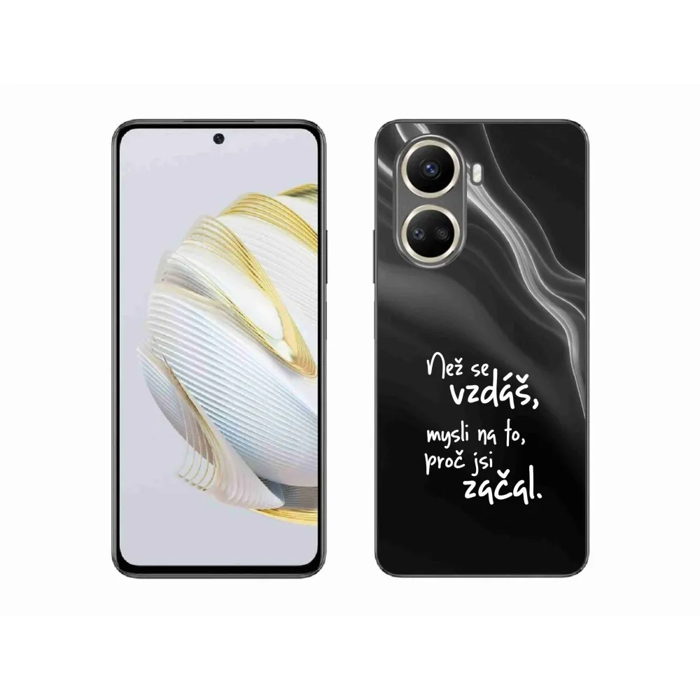 Rugalmas zselés tok mmCase a Huawei Nova 10 SE képével - idézet 2 fekete háttérrel