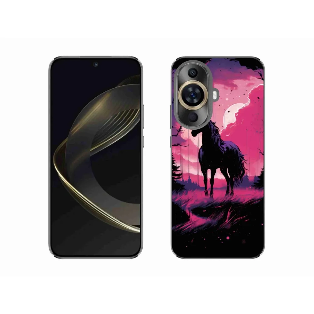 Rugalmas zselés tok mmCase a Huawei Nova 11 képével - fekete rajzfilm ló 1